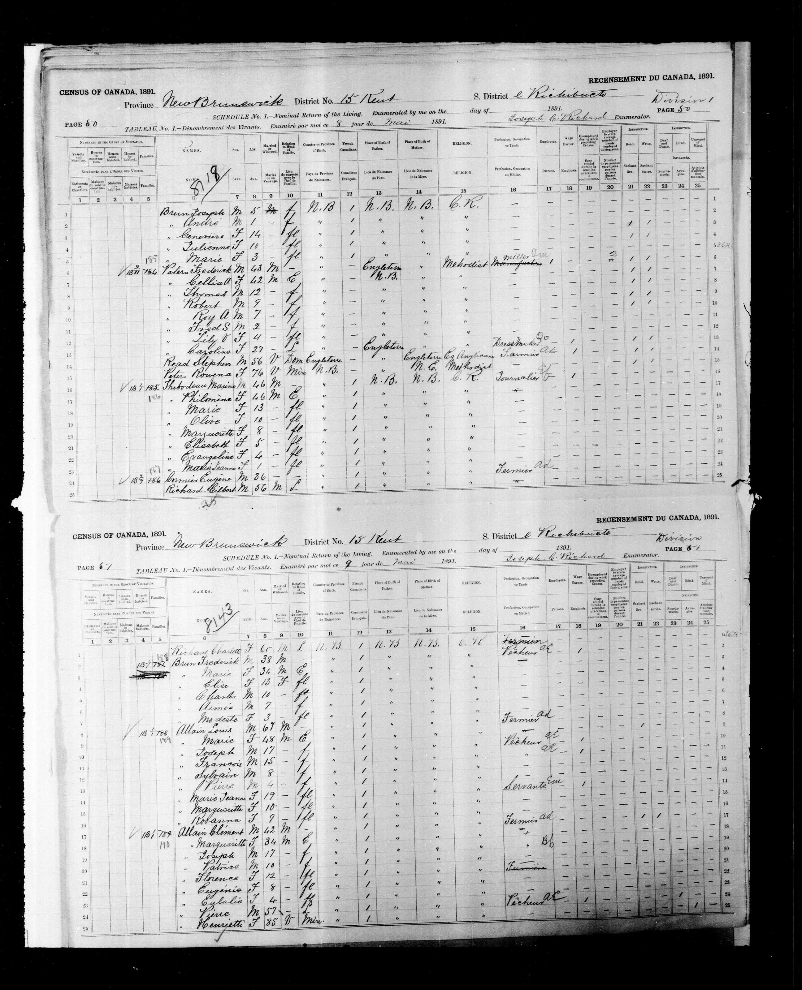 - 1891 Census of Canada Ancestry.com Operations Inc (Marital Status: SingleRelation to Head of House: Fils)