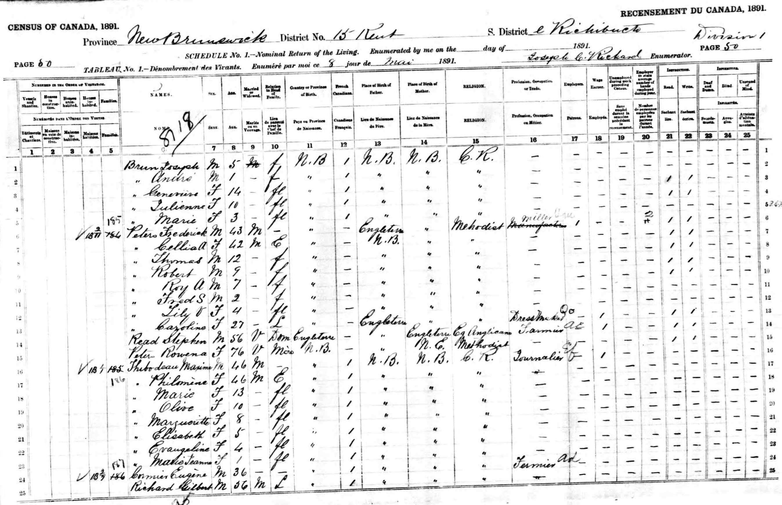 - 1891 Census of Canada Ancestry.com Operations Inc (Marital Status: SingleRelation to Head of House: Fils)