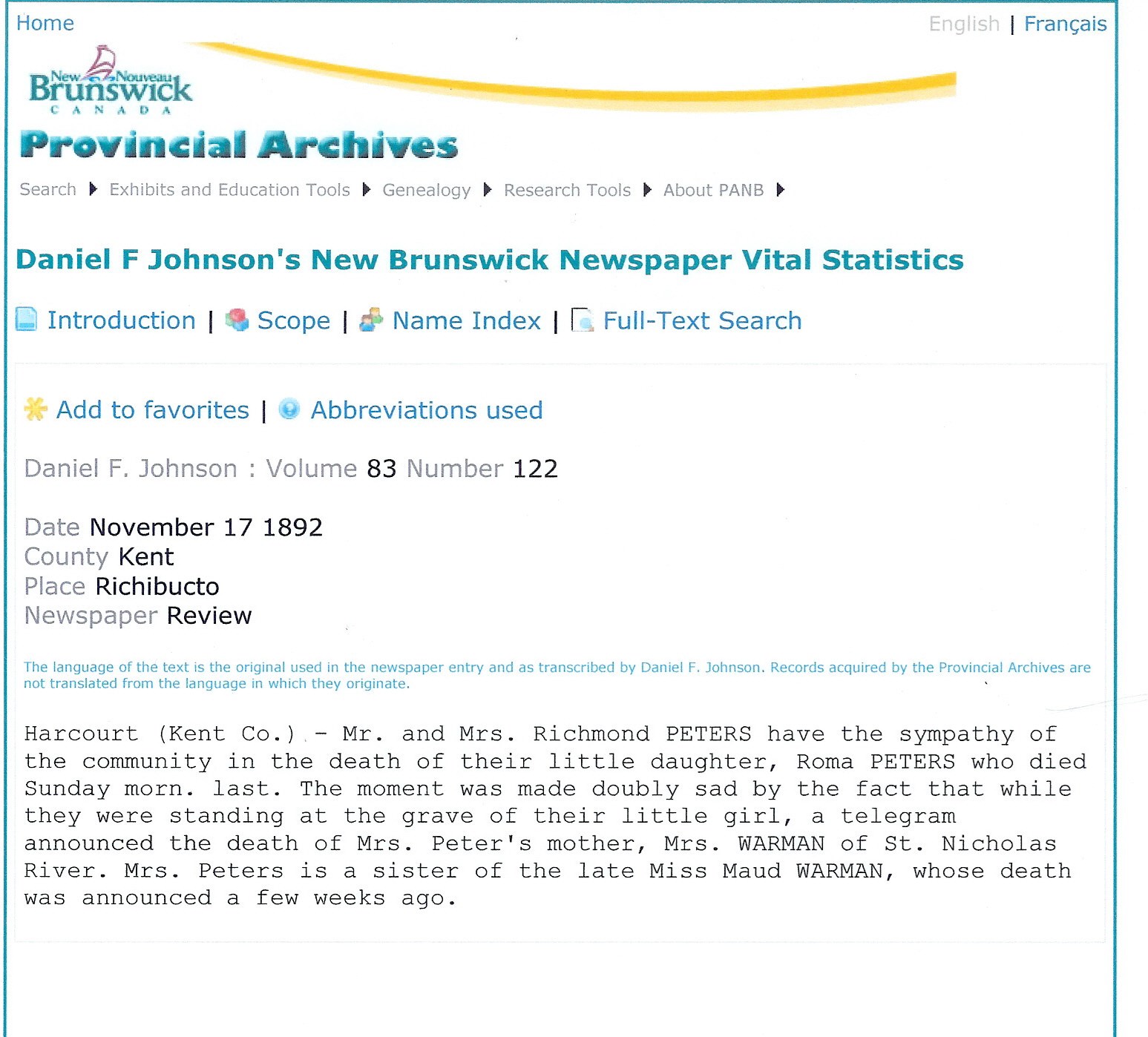 She died on Nov 19, 1892 in Richibucto.