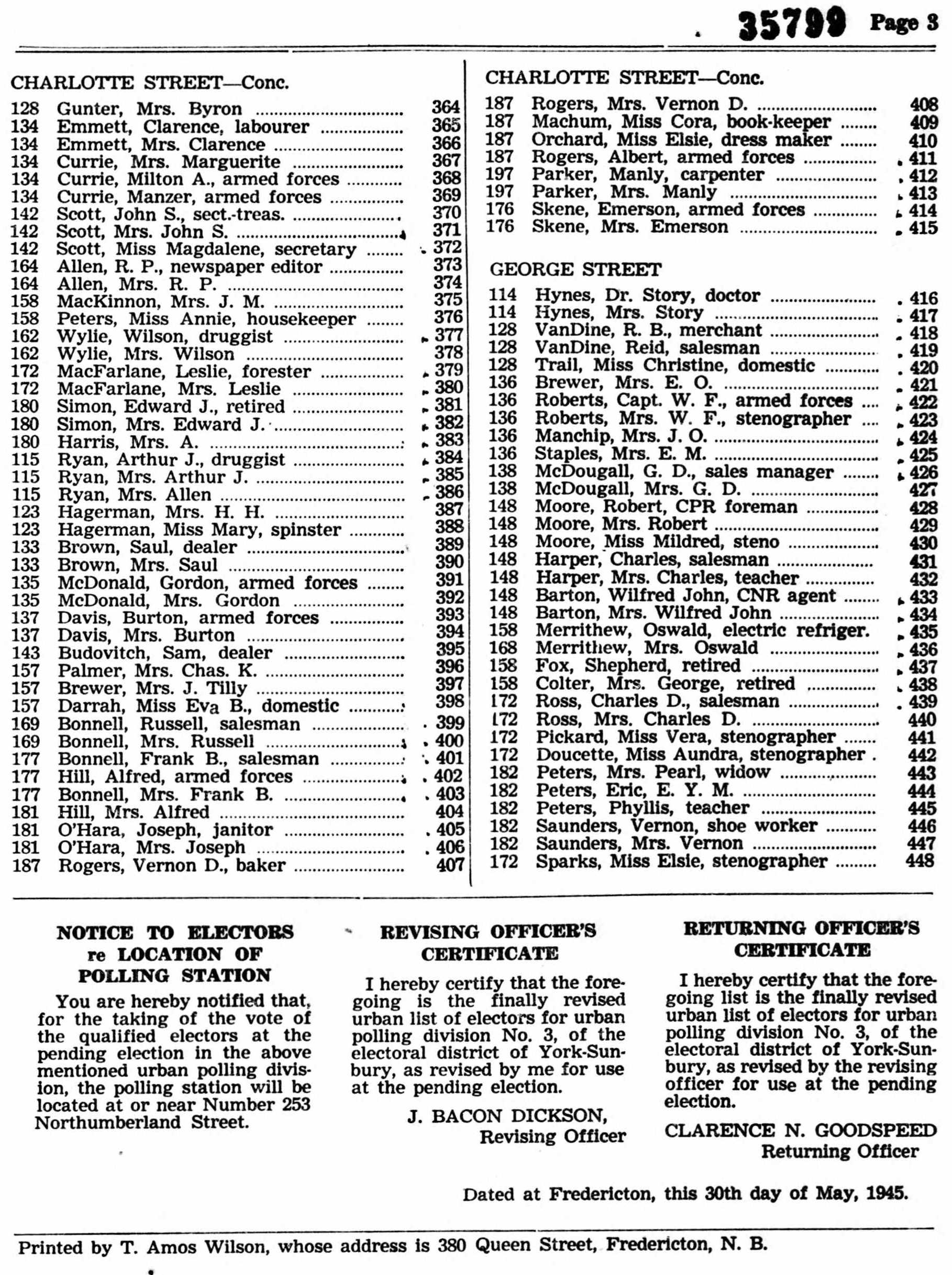 Throughout her life, she lived on Brackley Point Road, Queens, Prince Edward Island, Canada on Jun 1, 19211; and at 182 George Street, Fredericton, New Brunswick in 1940 and in 1945 (the same place as her mother had been living in 1943). She arrived in Westby, Montana, USA on Jun 27, 1928.
