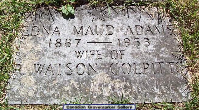 Edna Adams, the wife of Ralph Watson Colpitts (the third cousin twice-removed on the father's side of Nigel Horne), was born on Oct 12, 1887. She married Ralph in Simcoe, Ontario, Canada on Sep 22, 1910.