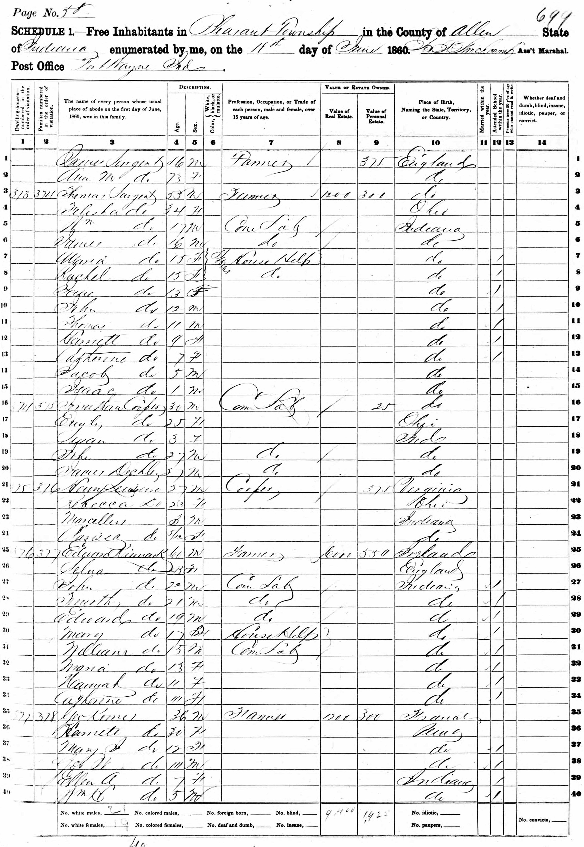 Rachel Sargent, the second cousin four-times-removed on the mother's side of Nigel Horne, was born in Allen, Indiana, USA on Aug 26, 18451,2 and married William Bixler (a laborer with whom she had 7 children: Frances J, William Andrew, John B, Thomas Isaac, Rosetta Edna, Lillie May and Lester M) in Fort Wayne, Indiana on Nov 19, 18623.