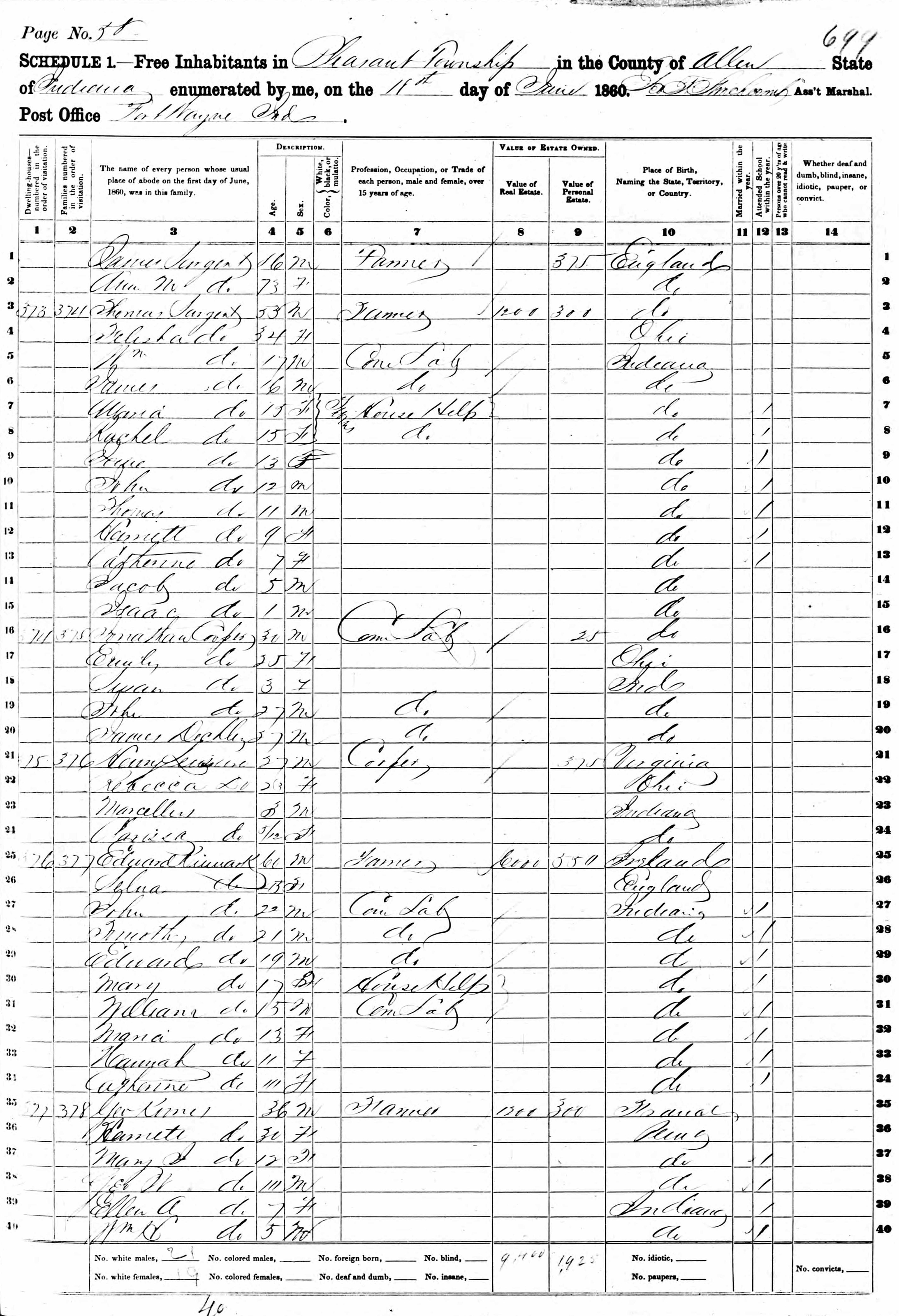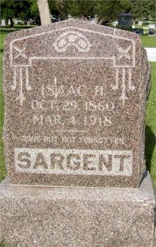Isaac Sargent, the second cousin four-times-removed on the mother's side of Nigel Horne, was born in Allen, Indiana, USA on Oct 29, 18601,2 and, and was orphaned at the age of 15 following the death of his father in 1873 and mother in 1875.