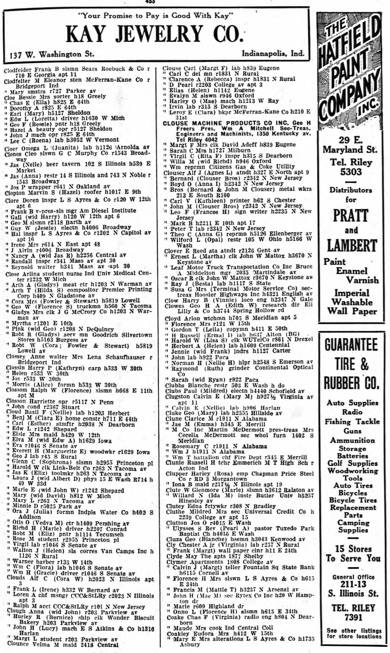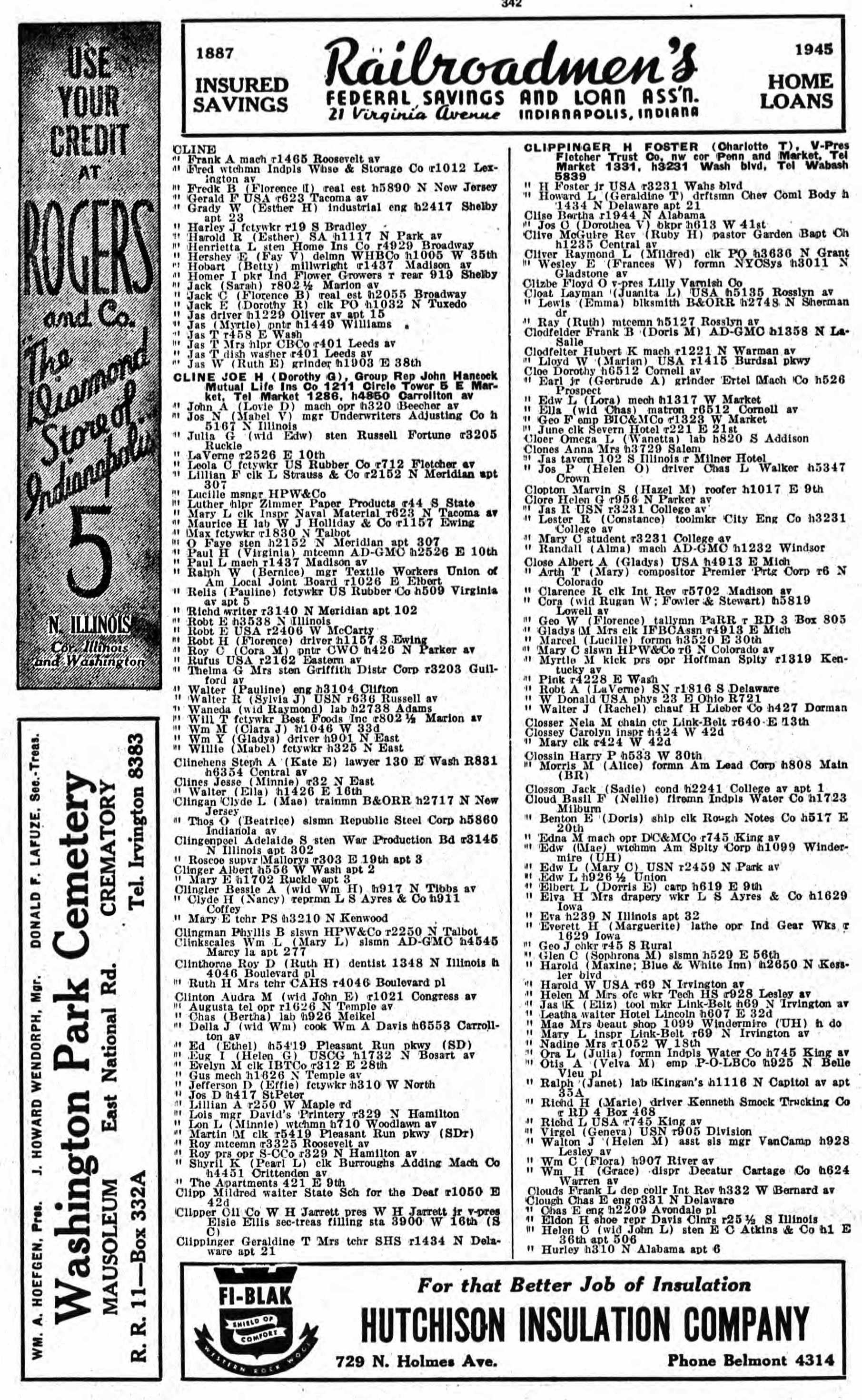 Throughout her life, Nellie lived in several places: at her birthplace on Apr 21, 19107; in Owen on Jan 1, 19206; at 1361 W Ray Street, Indianapolis, Marion, Indiana on Nov 11, 1930; at 1203 Herbert Street, Indianapolis, Marion, Indiana in 1936; at 1723 Milburn Street, Indianapolis, Marion, Indiana in 1945; and in Indianapolis, Marion, Indiana in 1985 which is where she died on Jun 101,2,4. She was buried there at Floral Park Cemetery after Jun 10, 19852.