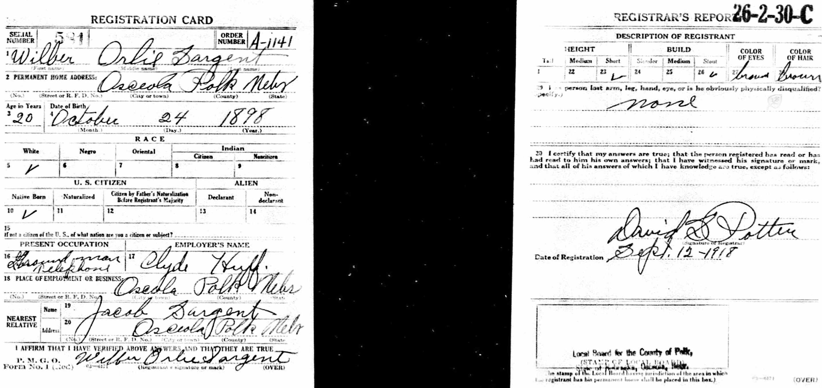 Wilbur Sargent - WWI draft