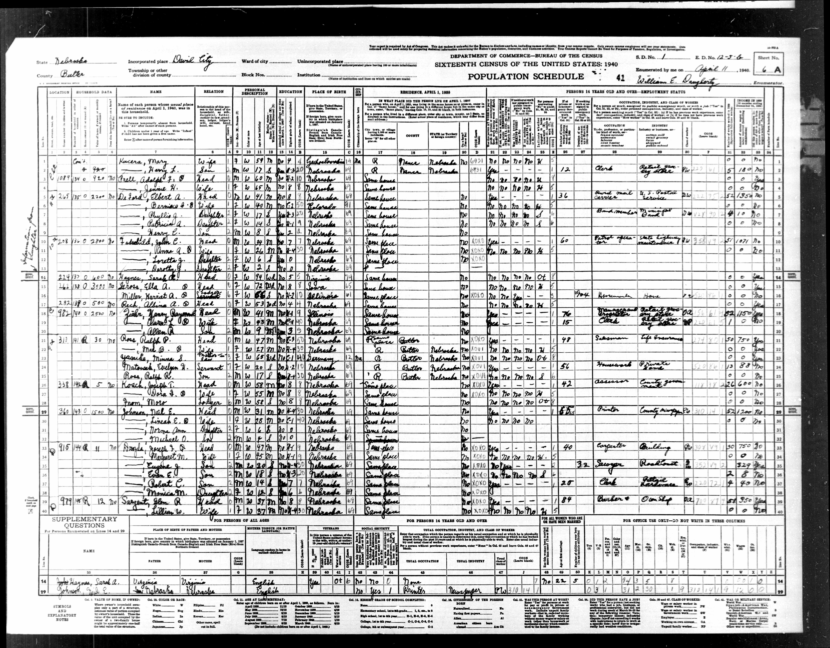 Glen Sargent - 1940 Census