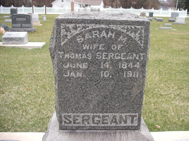 Sarah Mcgraw, the wife of Thomas Sargeant (the second cousin four-times-removed on the mother's side of Nigel Horne), was born in Indiana, USA on Jun 14, 18441 and married Thomas (with whom she had 2 children: Sarah and Thomas Nelson) in La Porte, LaPorte, Indiana on Sep 4, 1869.