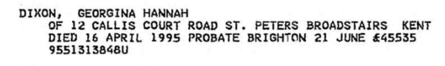 Georgina Hannah Culmer - Probate