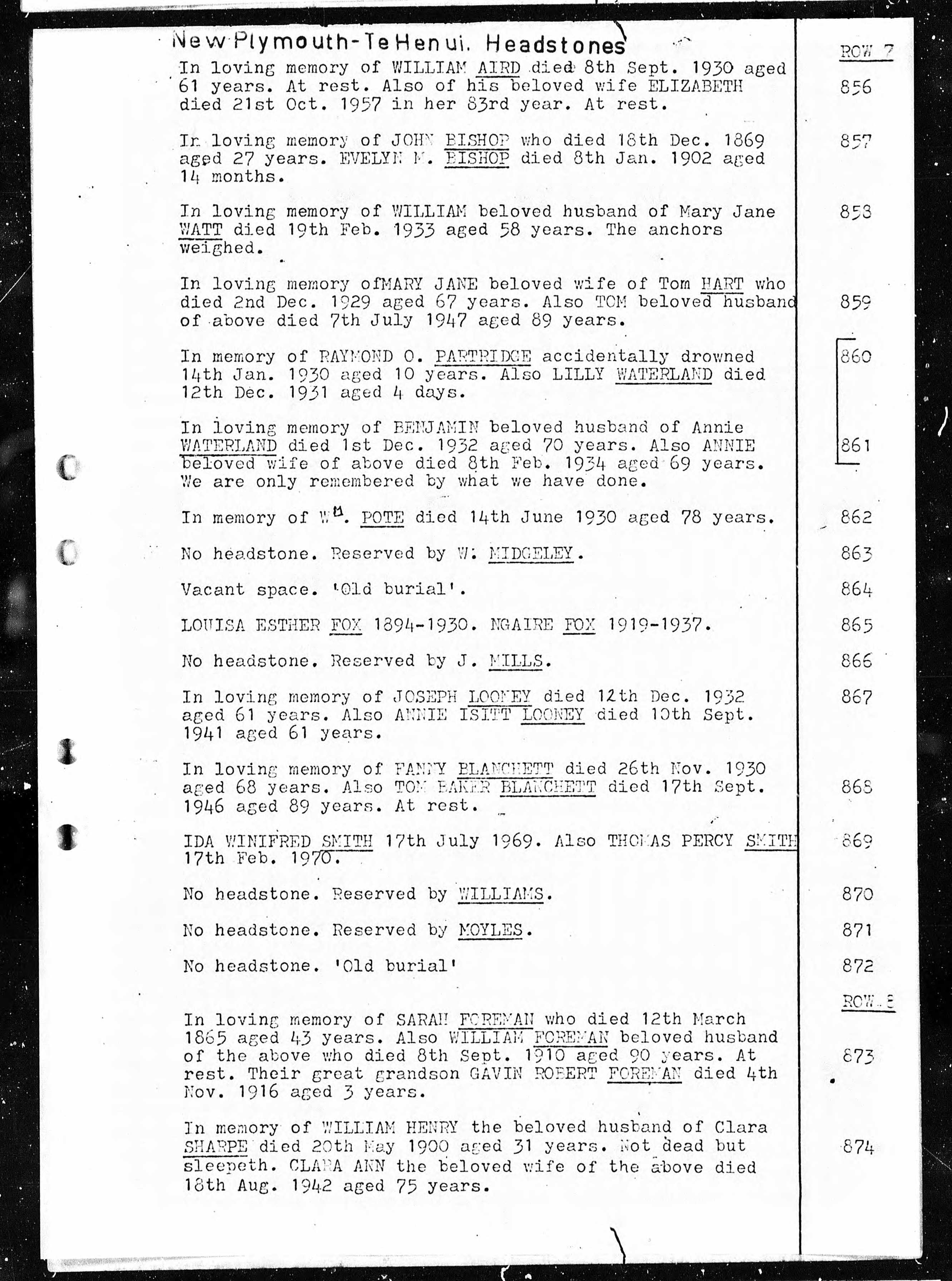 She died on Mar 12, 1865 in New Plymouth, Taranaki, New Zealand and was buried there at Te Henui after Mar 12, 1865.