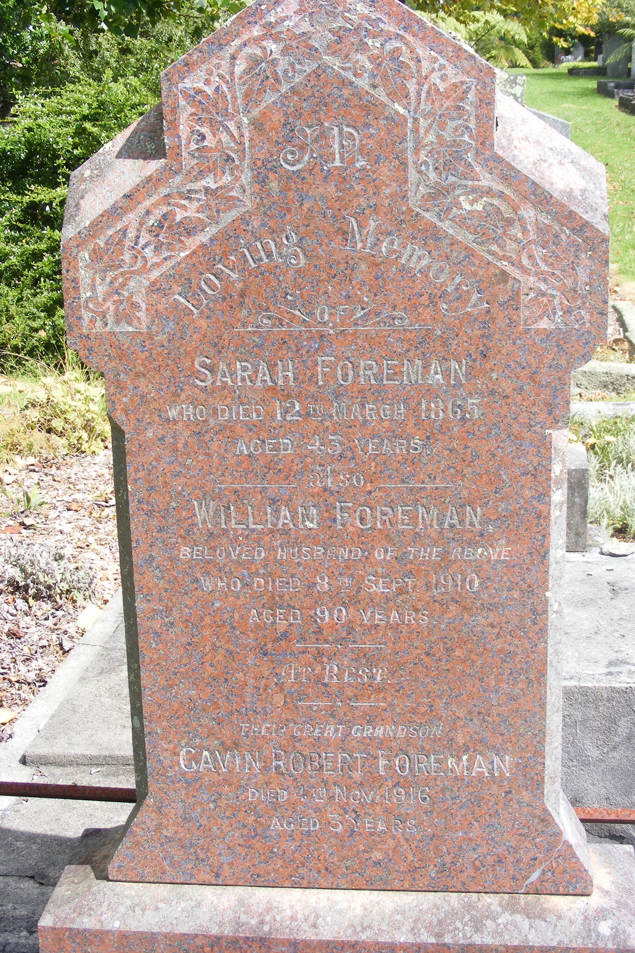 William Foreman - Sarah Spratt - gravestone