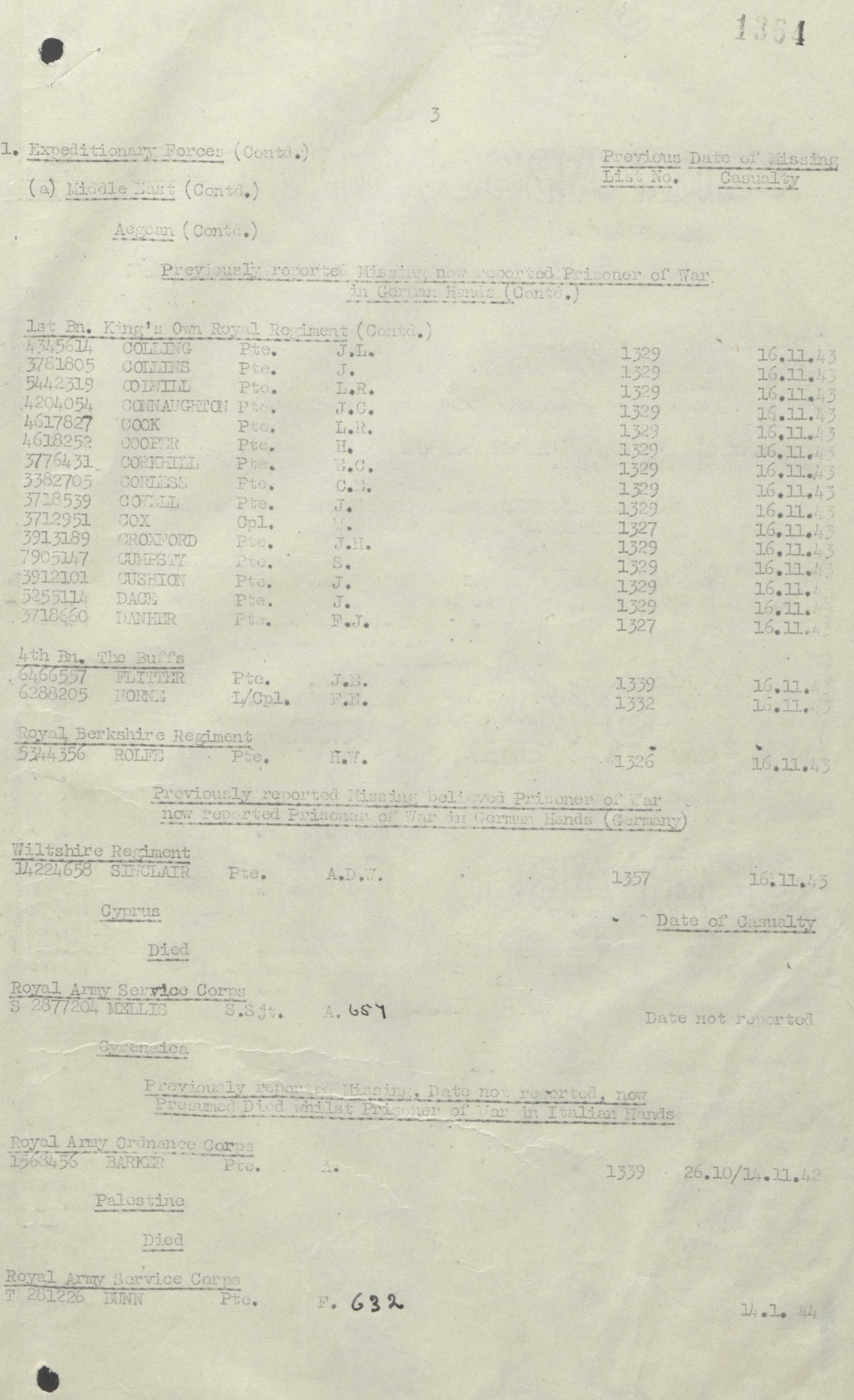 British Army Casualty Lists 1939-1945 Transcription - GBM-WO417-1030609