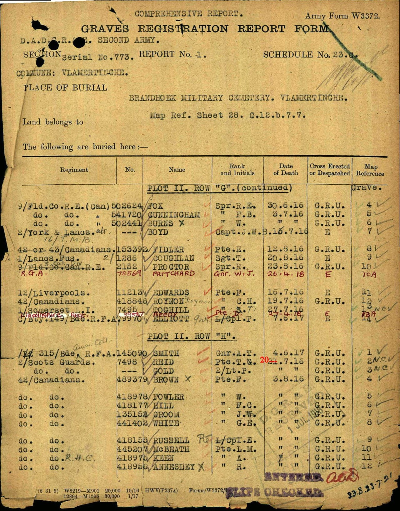 He died on Aug 3, 1916 in Ypres, West Flanders, Belgium1,2 and was buried at Brandhoek Military Cemetery, Vlamertinghe, Belgium in 1916.