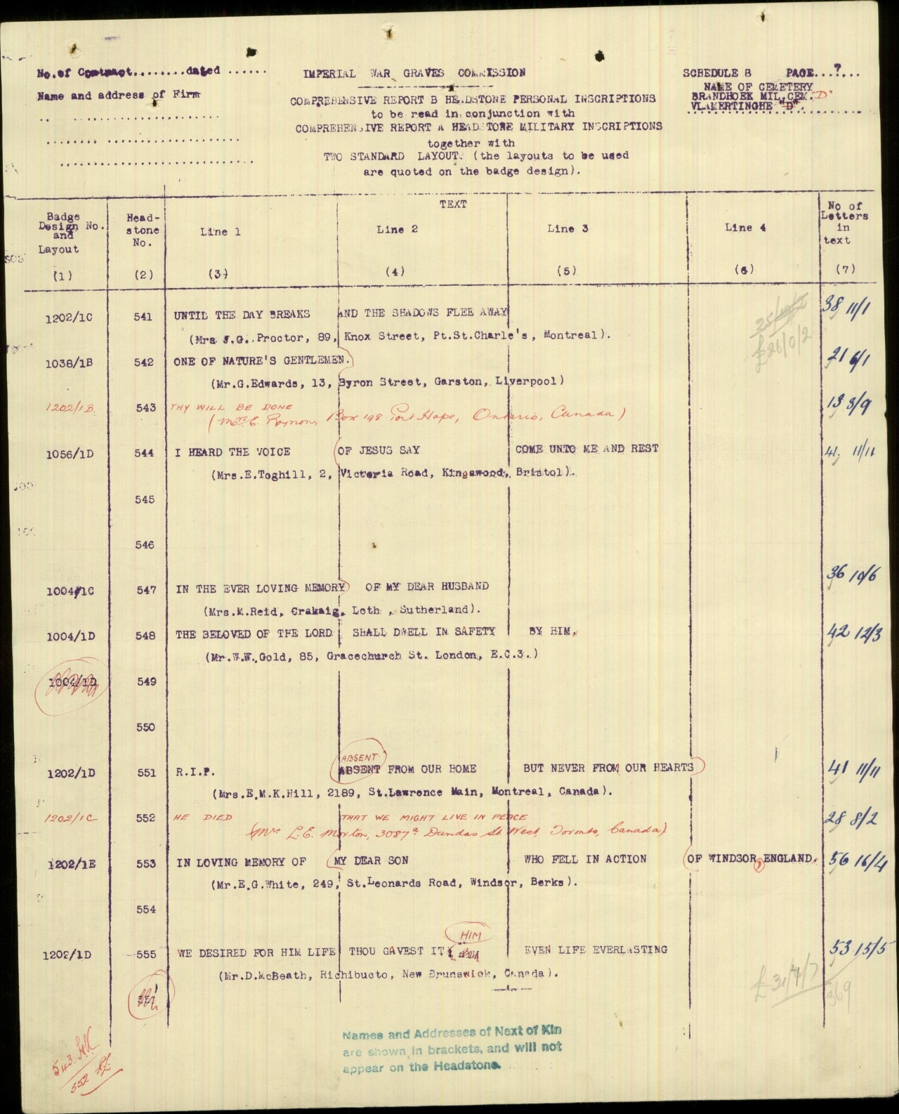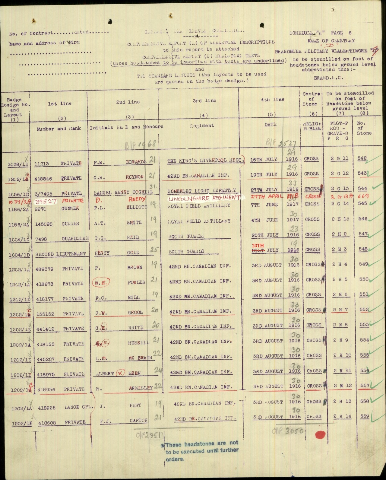Leigh McBeath - headstone schedule - 2