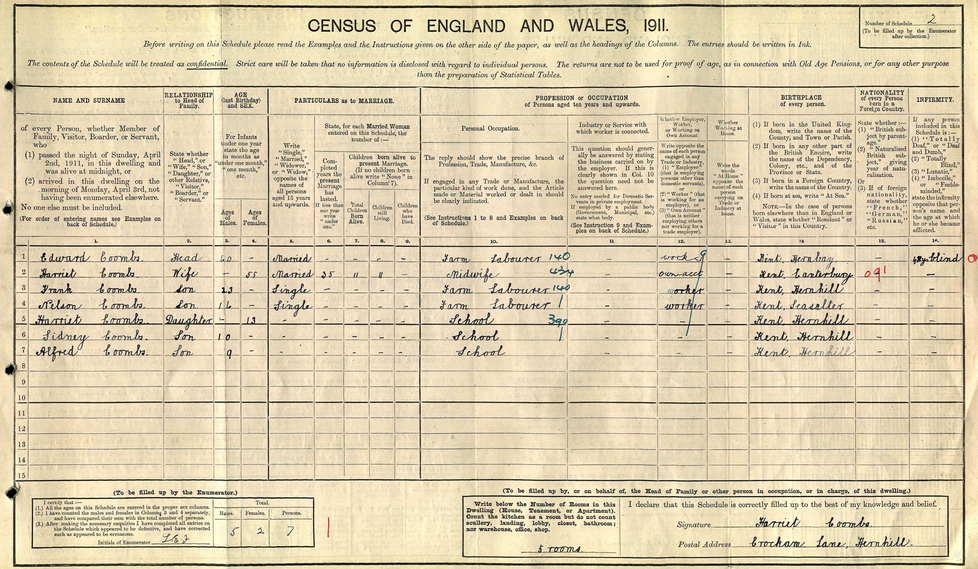 1911 Census for England & Wales - GBC/1911/RG14/04382/0003/7