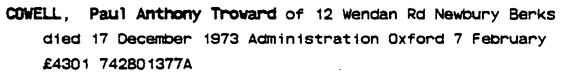 Paul Anthony Troward Cowell 1947 - 1973