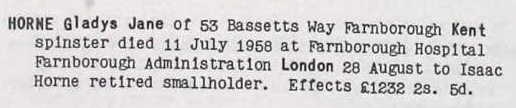 Gladys Horne, the aunt of Nigel Horne, was born in Ramsgate, Kent, England on Jan 25, 19141,2,3,4.