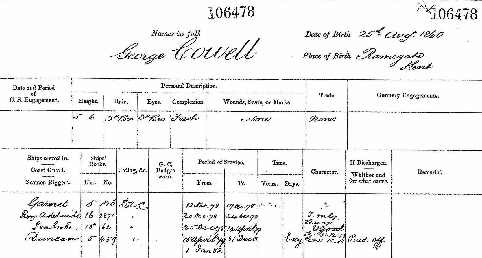 George Cowell - Naval Record