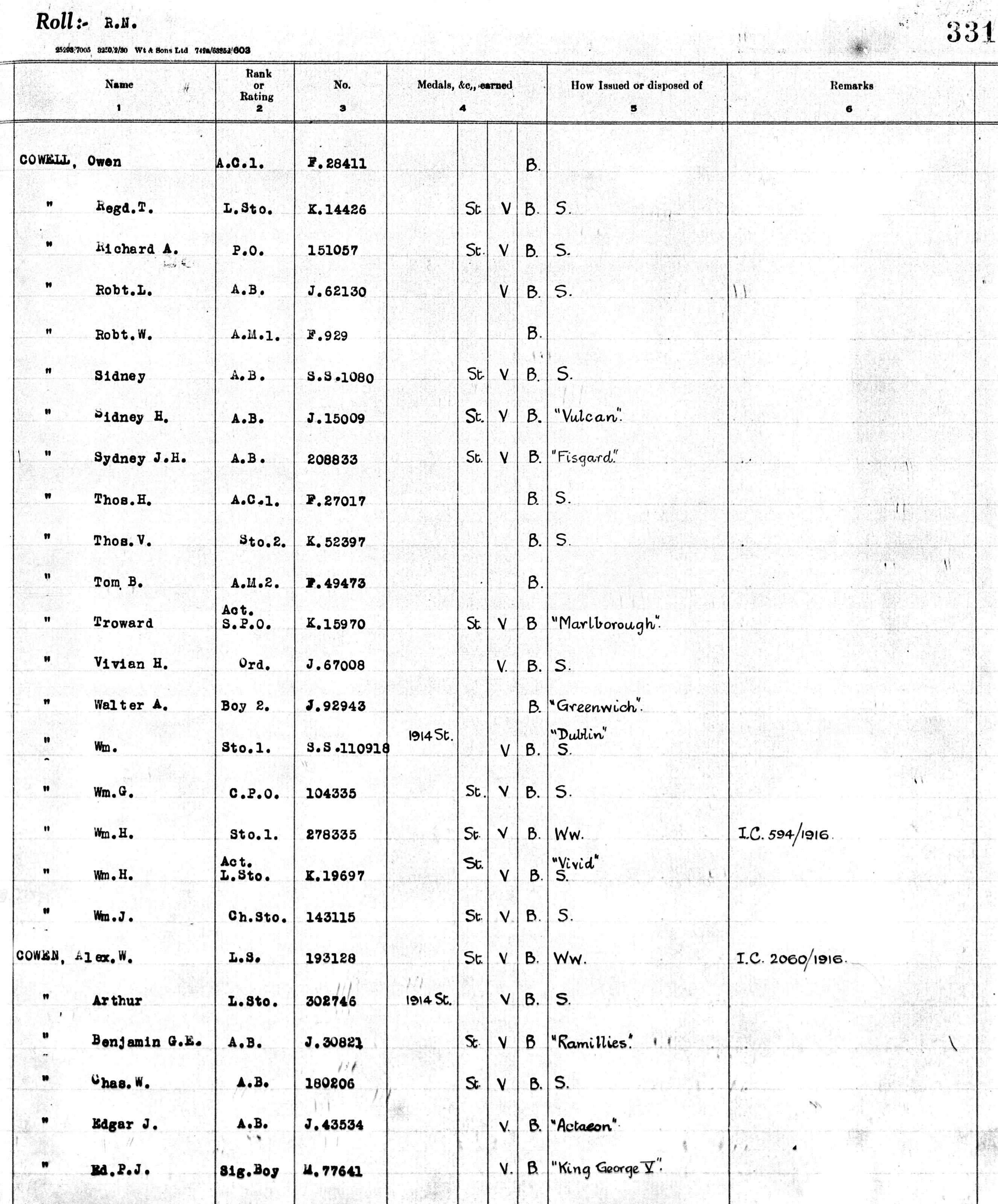 Sydney Cowell - Naval Medals