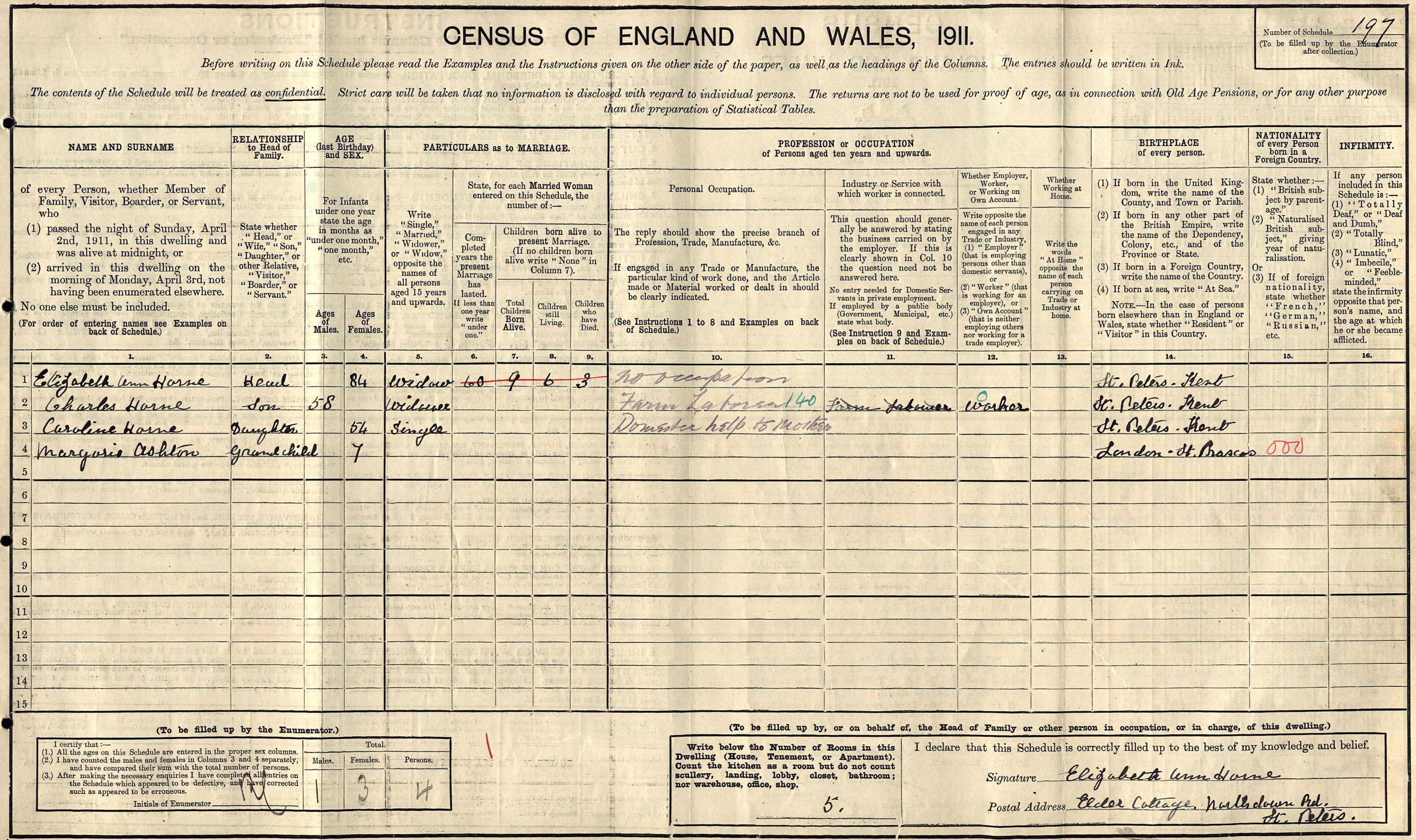 - 1911 Census for England & Wales - Findmypast (was age 84 and the head of the household)