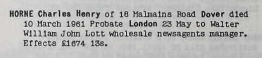 Charles Henry Horne - probate