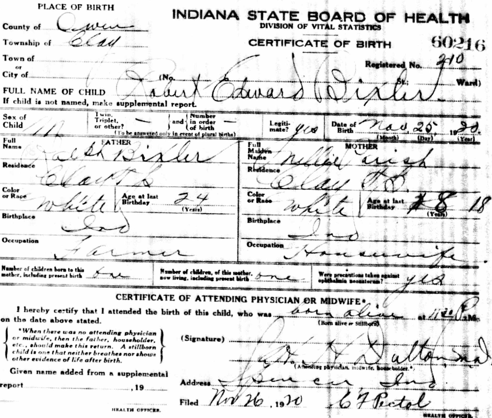 A carpenter and the eldest of 6 children of Ralph Bixler (a farmer) and Nellie Parrish,