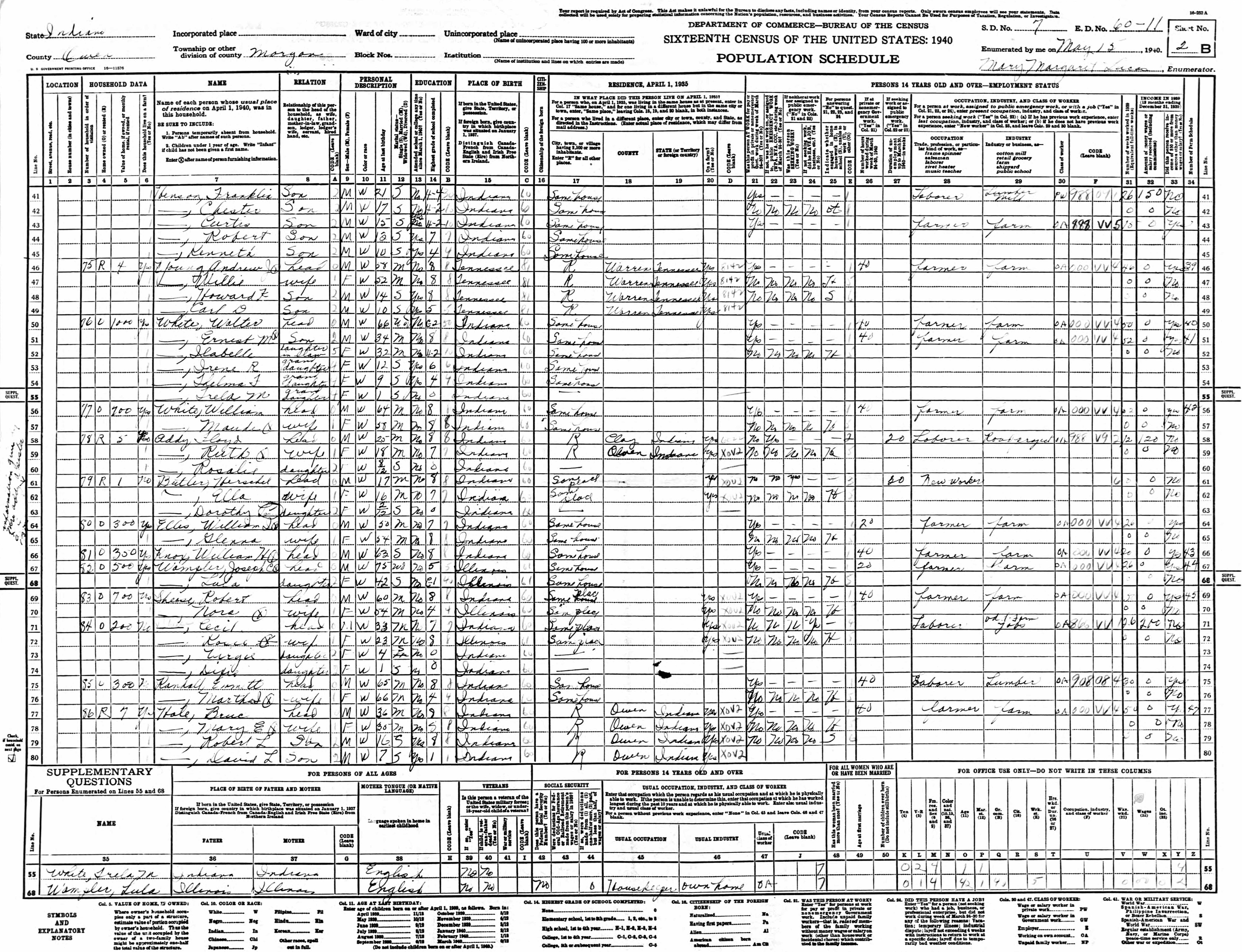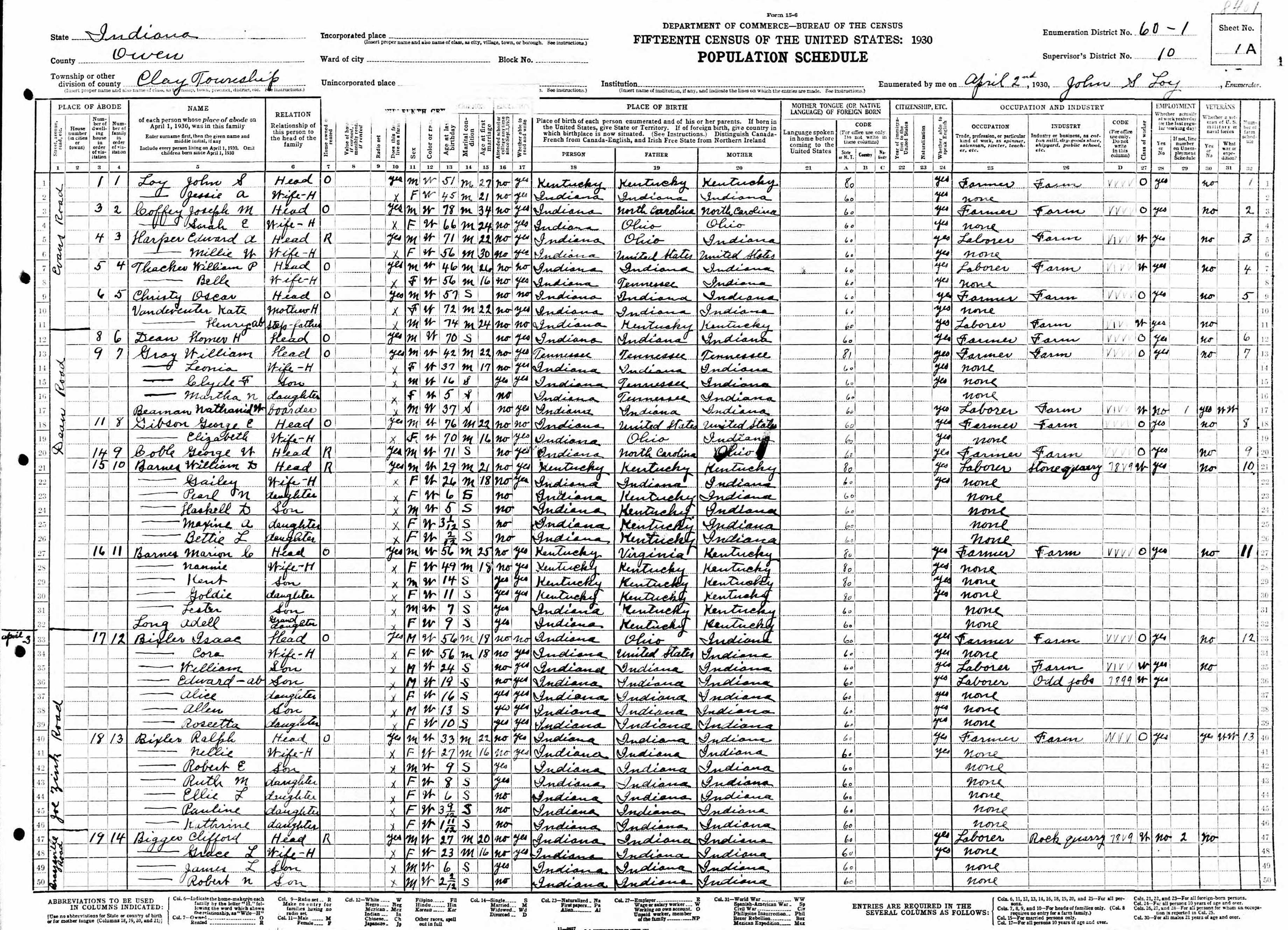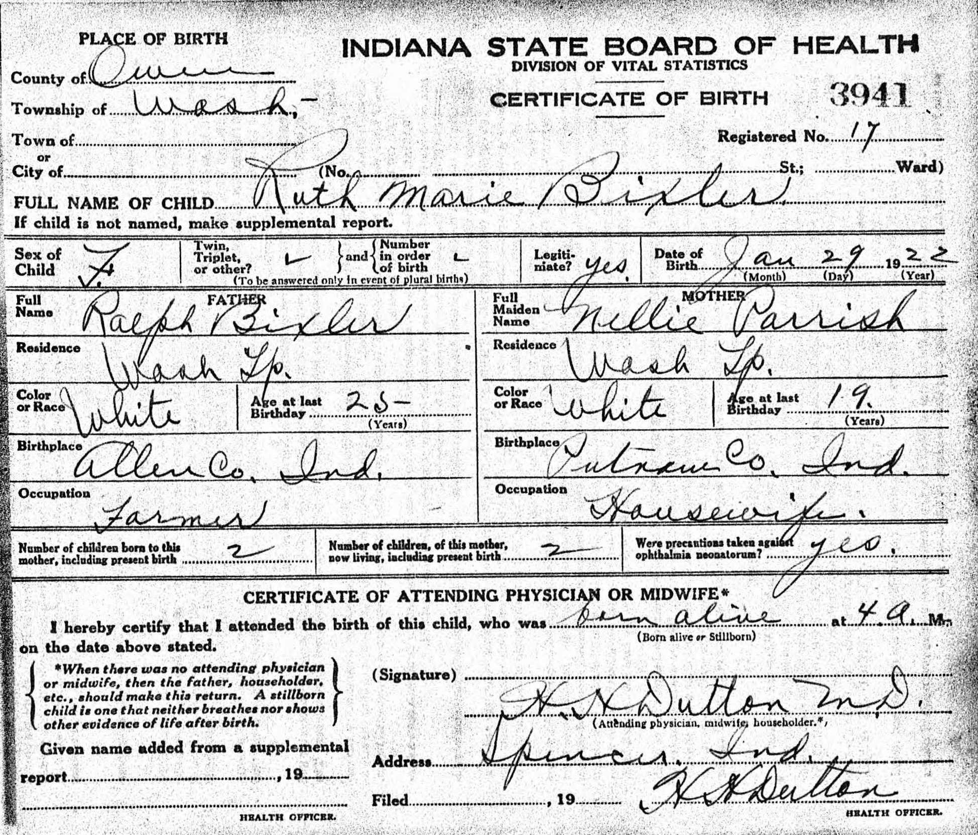 Throughout her life, Ruth lived in several places: on Joe Zink Road, Clay, Owen, Indiana on Apr 3, 19308; in Morgan, Owen, Indiana on May 12, 19407 (the same place as her father had been living on May 9, 1940); and at 417 W North Street, Spencer, Owen, Indiana in 19926.