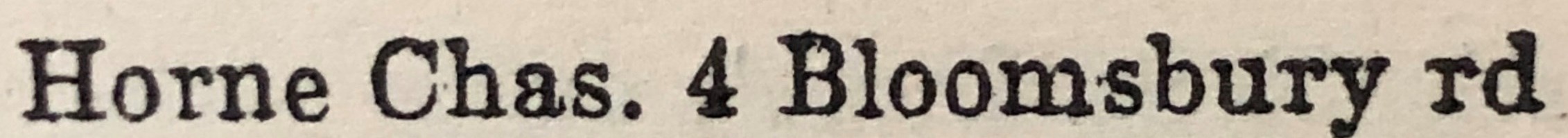 Charles Horn, the first cousin three-times-removed on the father's side of Nigel Horne, was born in Ramsgate, Kent, England on Oct 15, 18721,2,3,4,5 and married Annie Walker (with whom he had 8 children: Charles G, Pleasant Emily, Herbert Jack, Annie Rose, Walter Stephen, Frederick, Doris Olive and Frances, along with 3 surviving children) in St Lawrence, Thanet, Kent, England on Jun 3, 19006.
