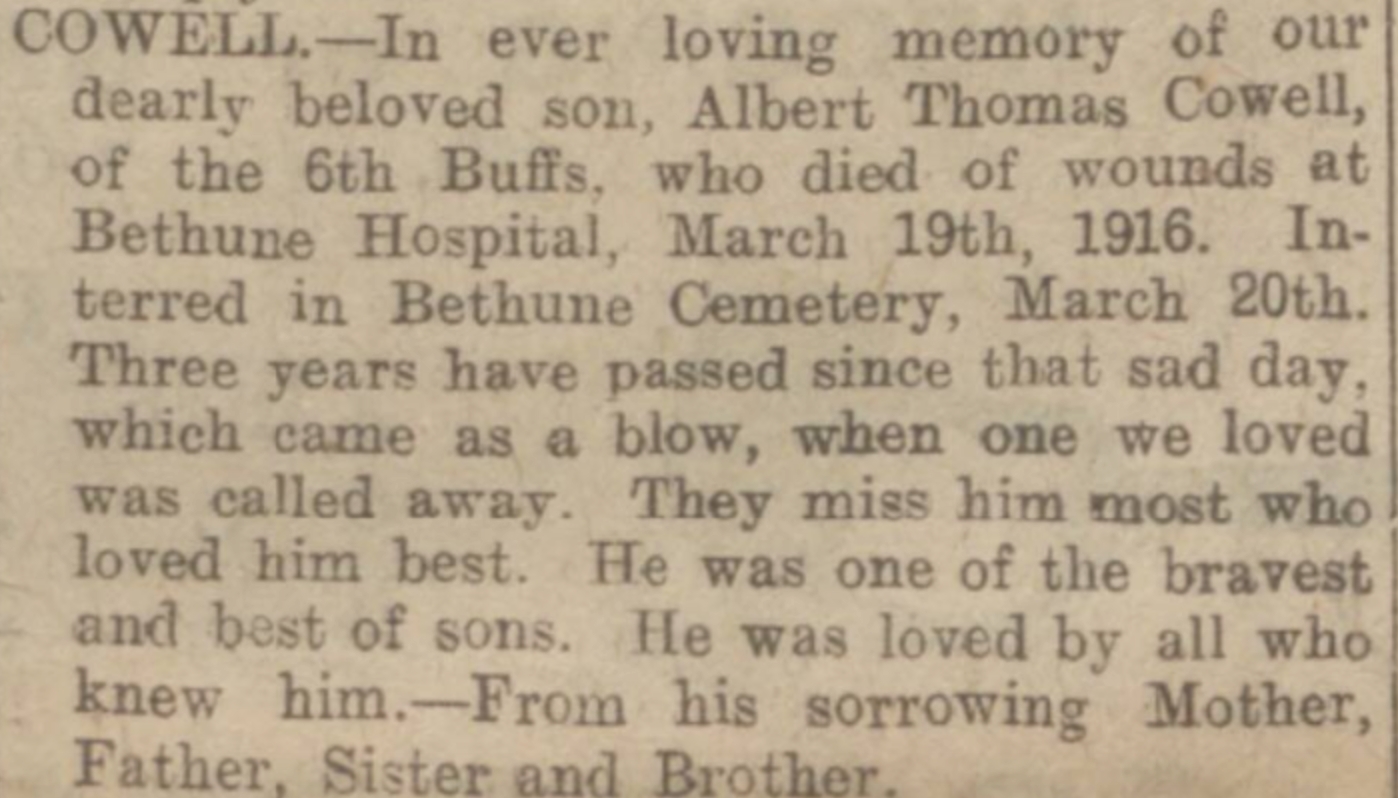 Albert Thomas Cowell cMay 1894 - 1916