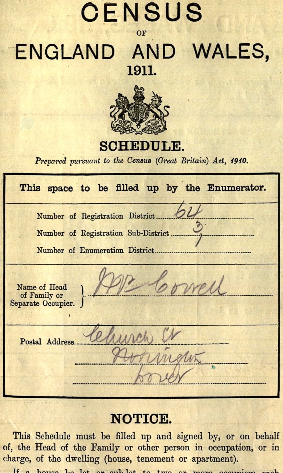 1911 Census for England & Wales - GBC/1911/RG14/04560/0013/3