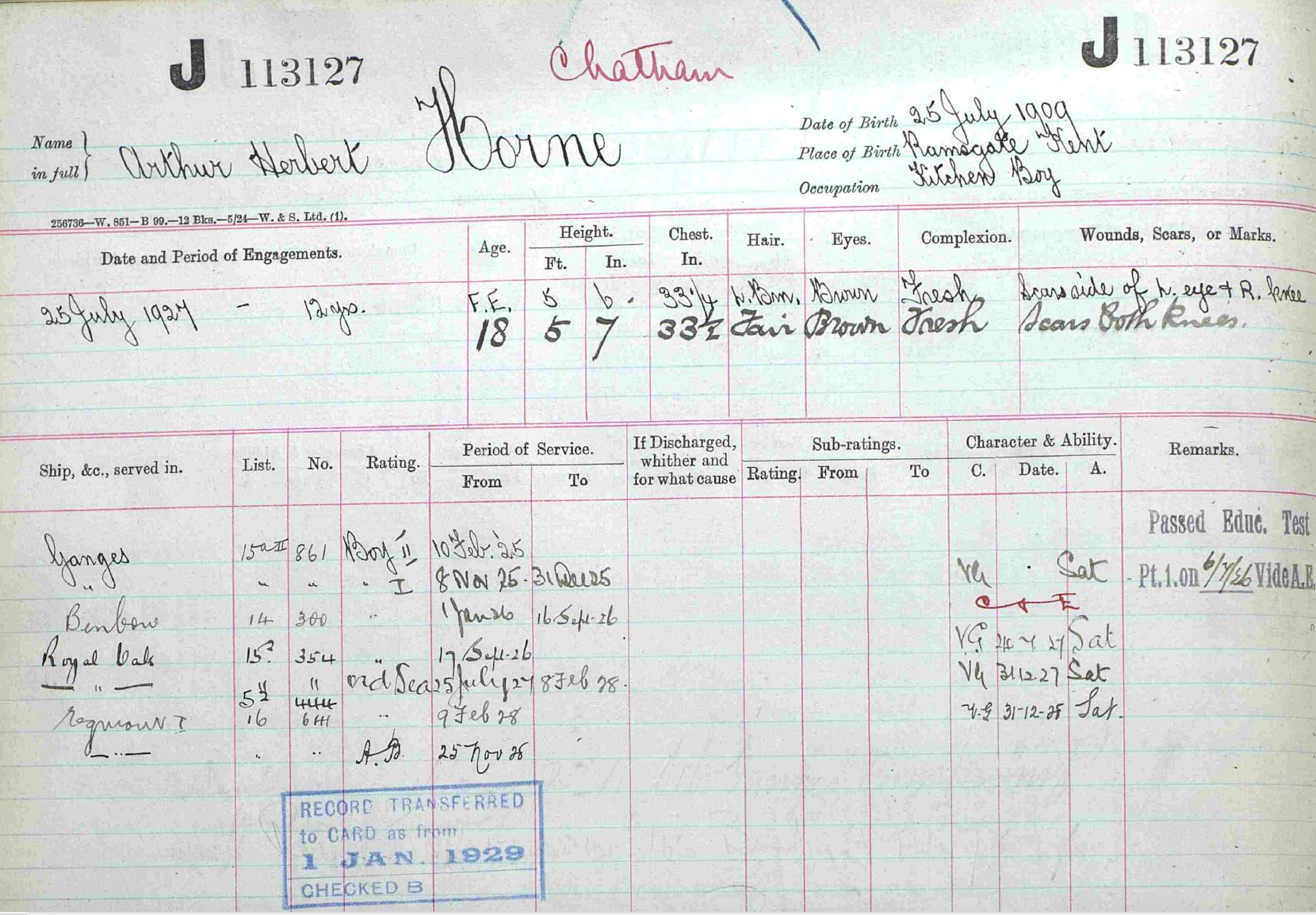 Arthur Herbert Horne - Naval Record 2