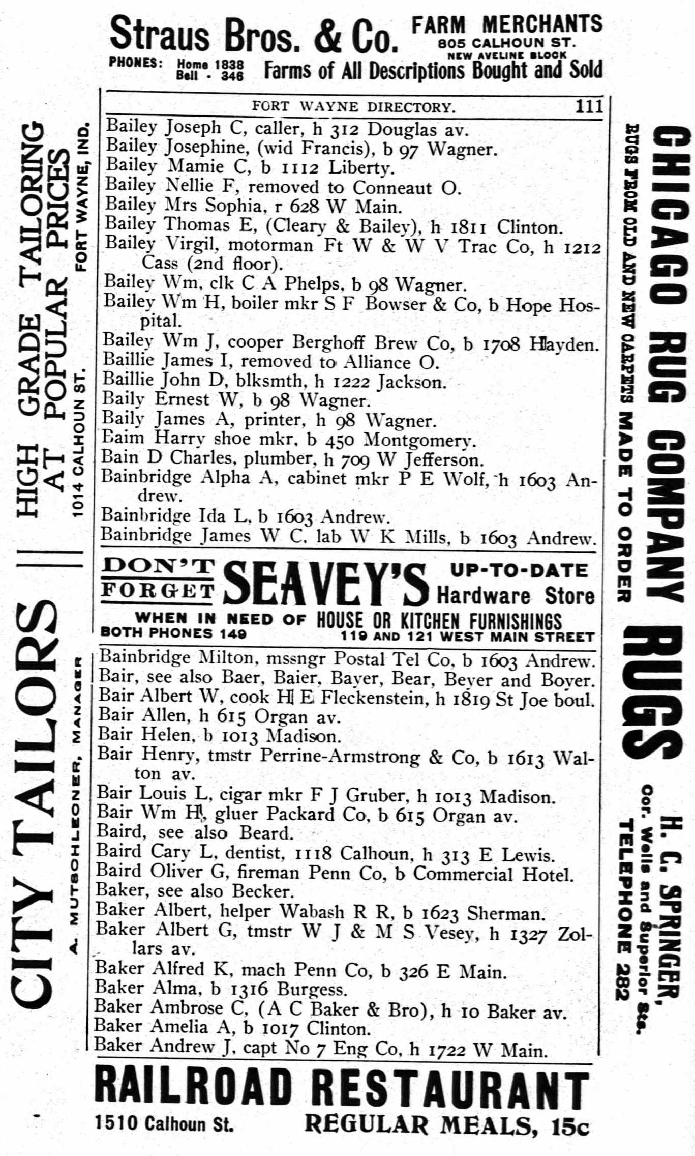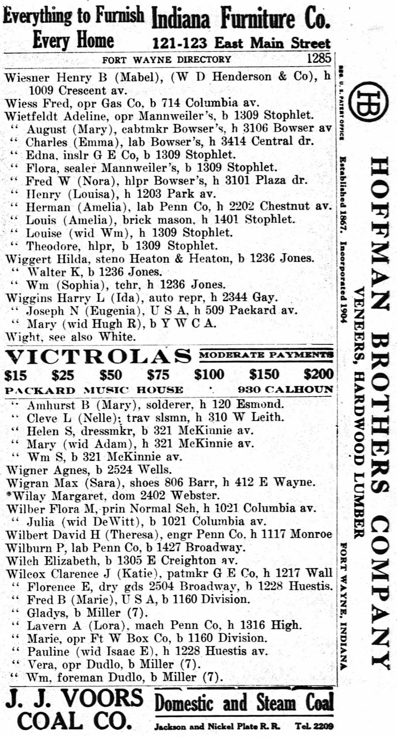 Throughout her life, Ida lived in several places: in Allen on Jun 1, 19001; at 1603 Andrew Street, Fort Wayne, Indiana in 1907; at 2344 Gay Street, Fort Wayne, Indiana in 1919; and in Allen on Jan 1, 19203 (the same place as her mother had been living on Jun 1, 1900).