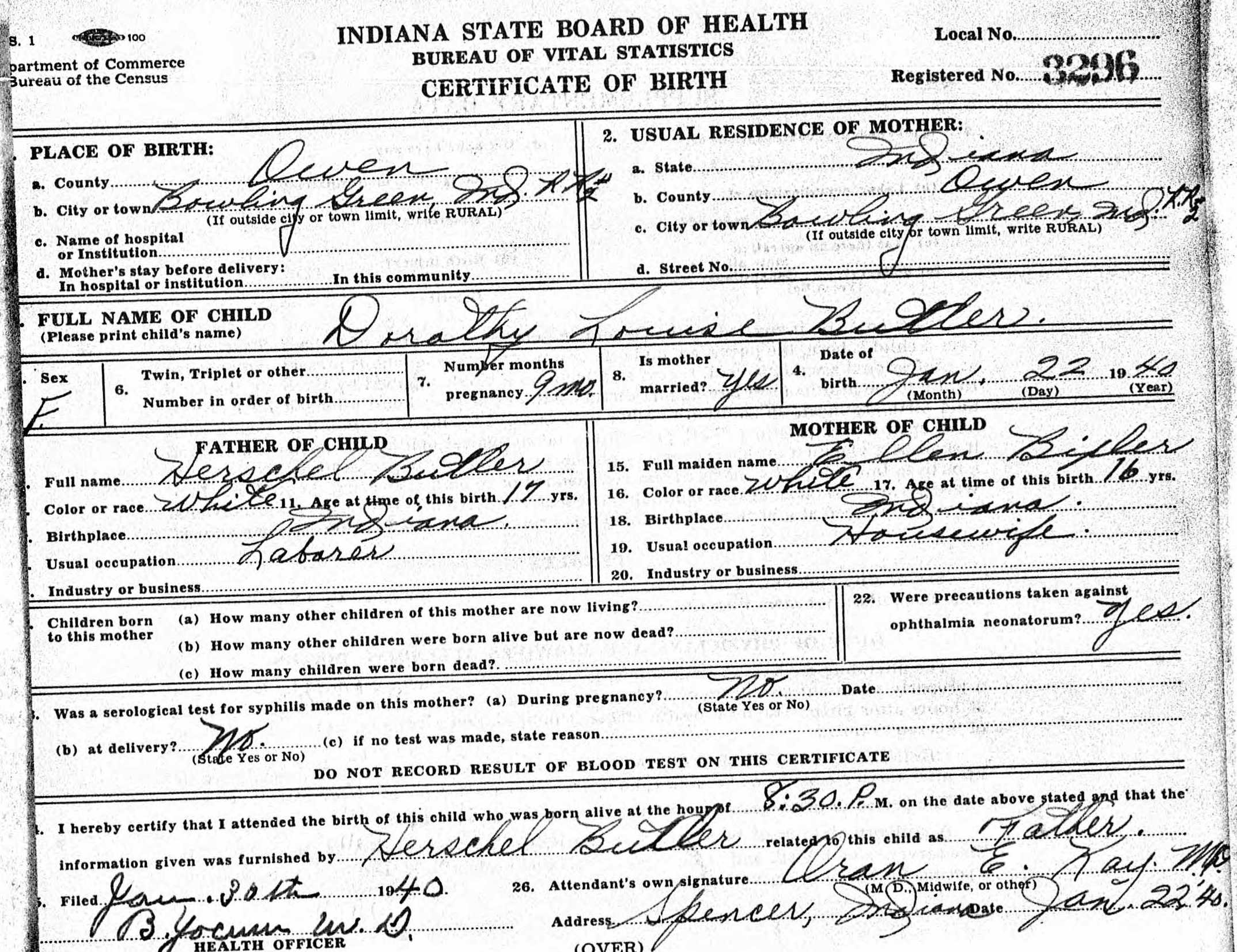 Dorothy Butler - birth certificate