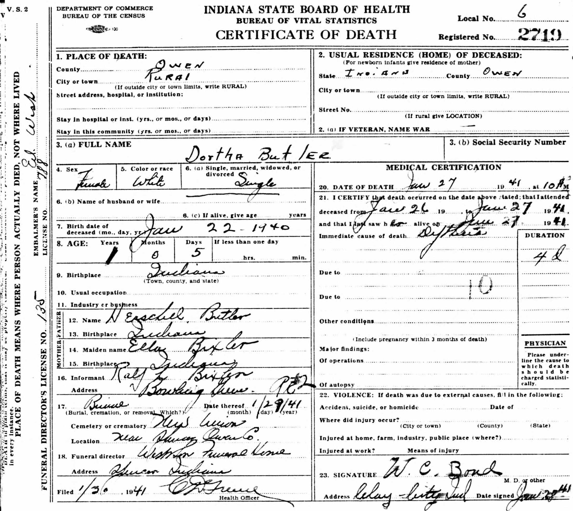 Dorothy Butler - death certificate