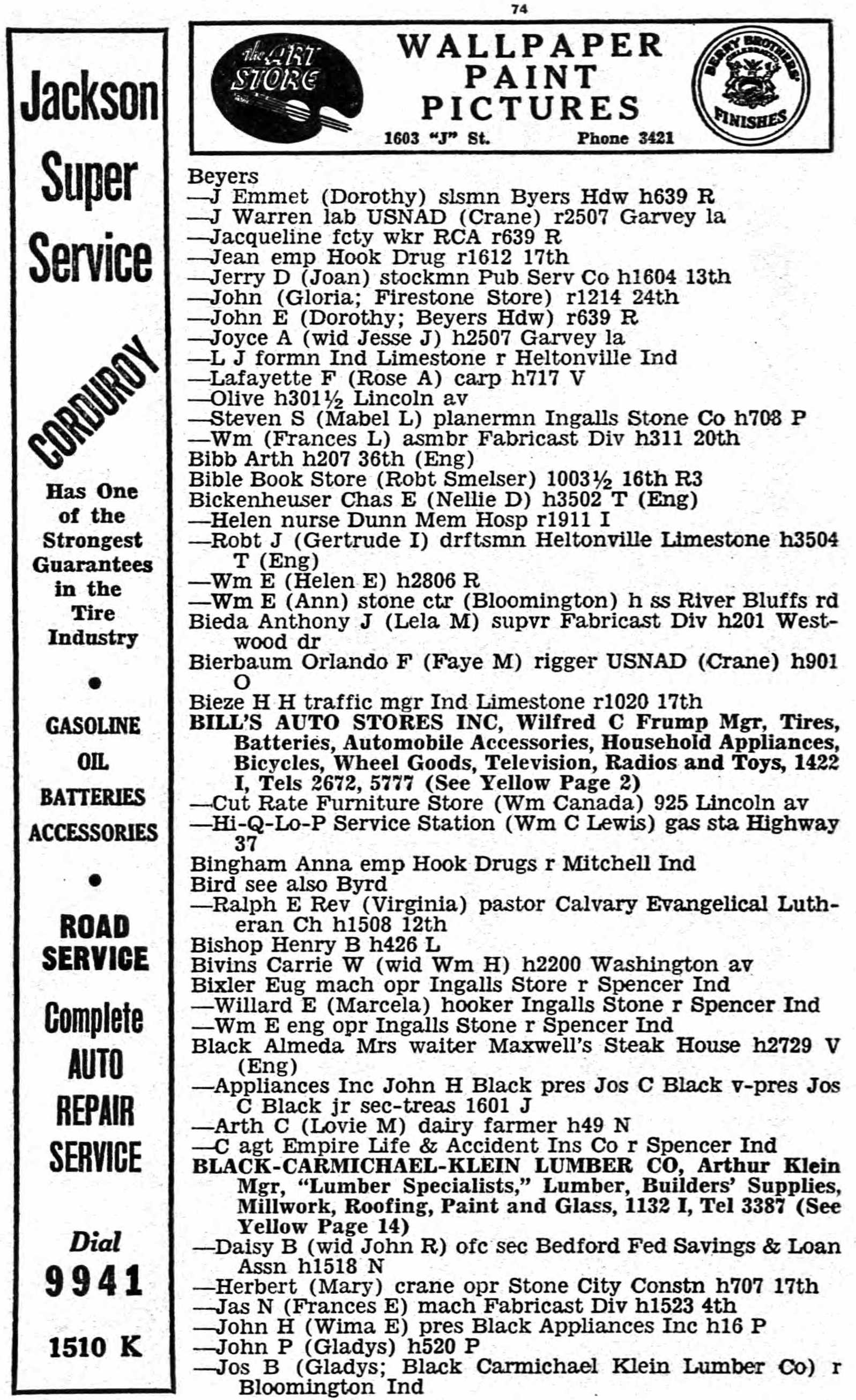 Throughout his life, he lived in Spencer, Indiana in 1956; and at 105 S. West Street, Spencer, Indiana in 2000. He served in the army (pFC US Army - Korea).
