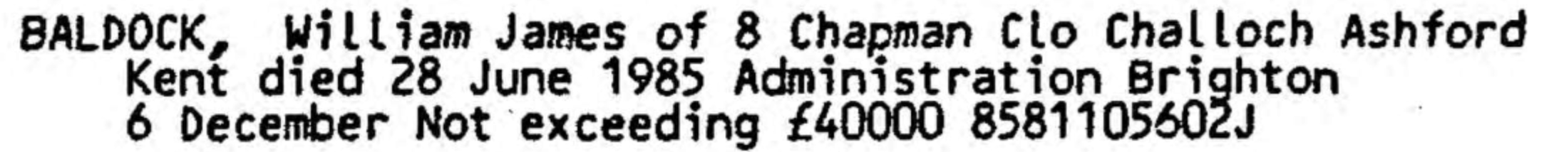 William James Baldock - Probate