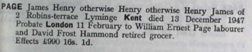 James Page, (also known as Henry Page) the second cousin twice-removed on the father's side of Nigel Horne, was born in Folkestone, Kent, England on Oct 14, 18611,2,3, was baptized there at Parish Church of St Mary & St Eanswythe, Church St on Dec 22, 1861 and also married Elizabeth Sellis (with whom he had 5 children: William Ernest, Fanny, Stanley Wallace, Hetty Camelia and Frederick Henry) there at Parish Church of St Mary & St Eanswythe, Church St, on Apr 16, 18825.