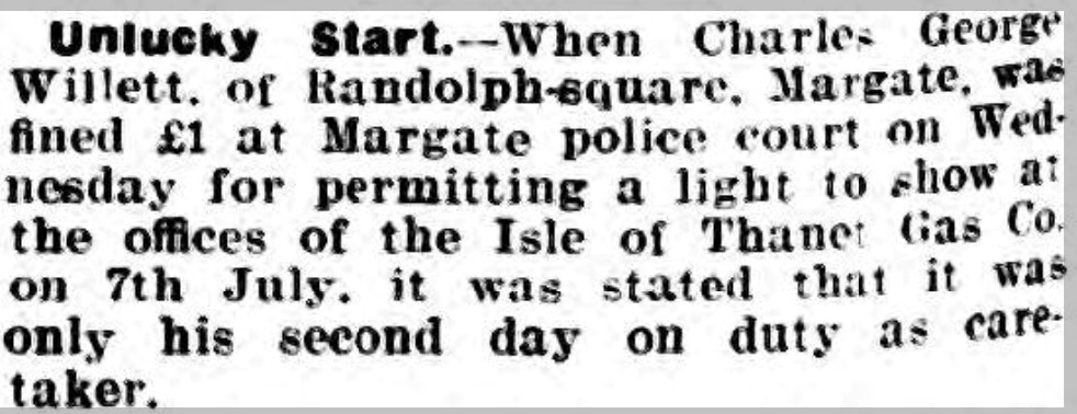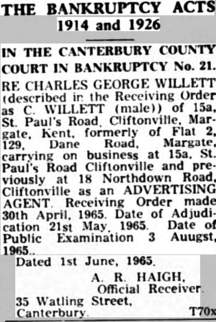 Charles Willett, the husband of Joyce Catherine Spratt (the first cousin once-removed on the father's side of Nigel Horne), was born in Thanet, Kent, England on Jul 5, 19151,2 and married Joyce (with whom he had 2 children: Michael St J and Helen J, along with 1 surviving child) in Thanet around Aug 19383.