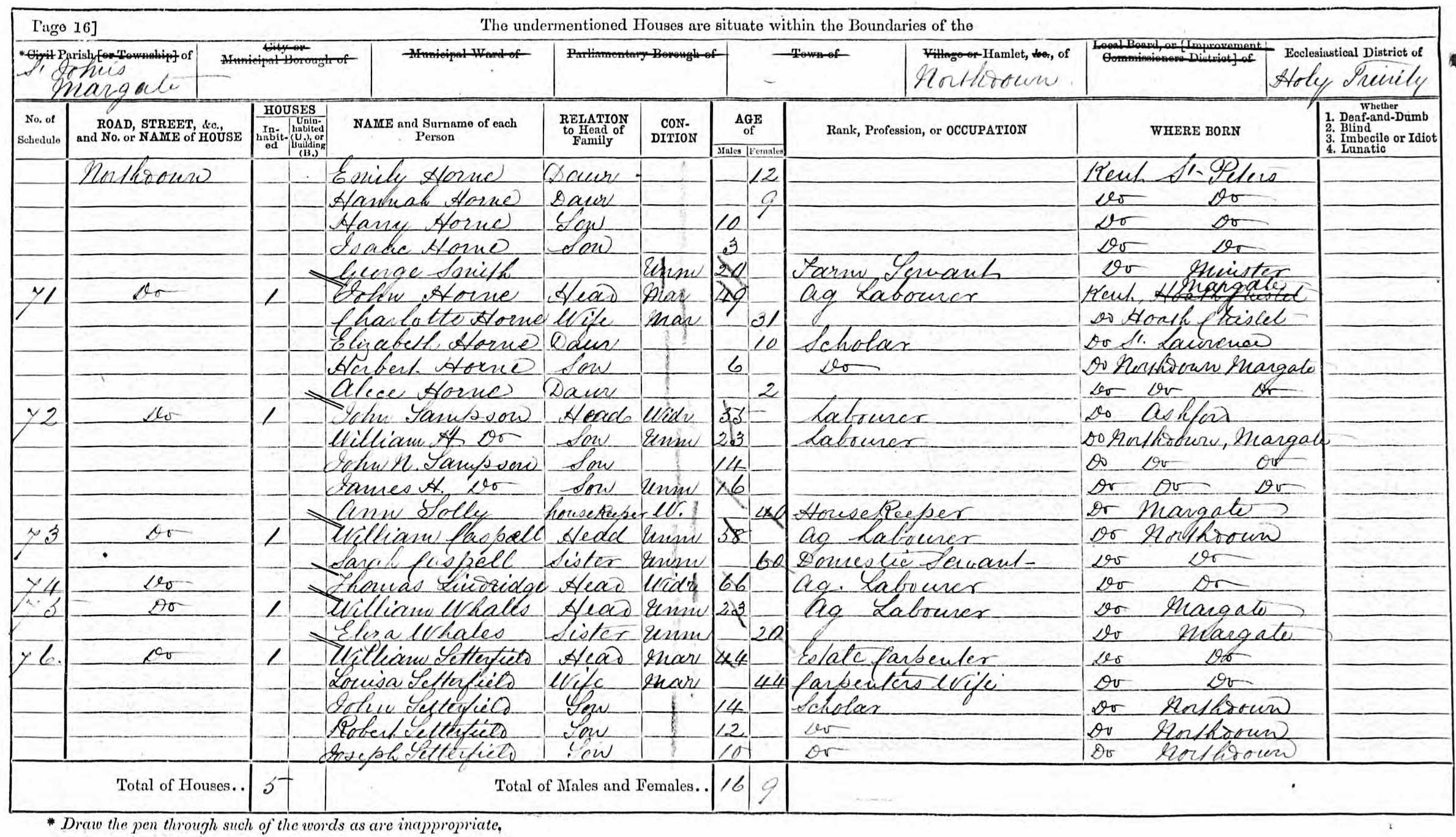 [ Home ] | [ Calendar ] | [ Surnames Index ] | [ Family History ]A carter and the son of John Horn (an agricultural laborer) and Charlotte Spratt (a laundress),