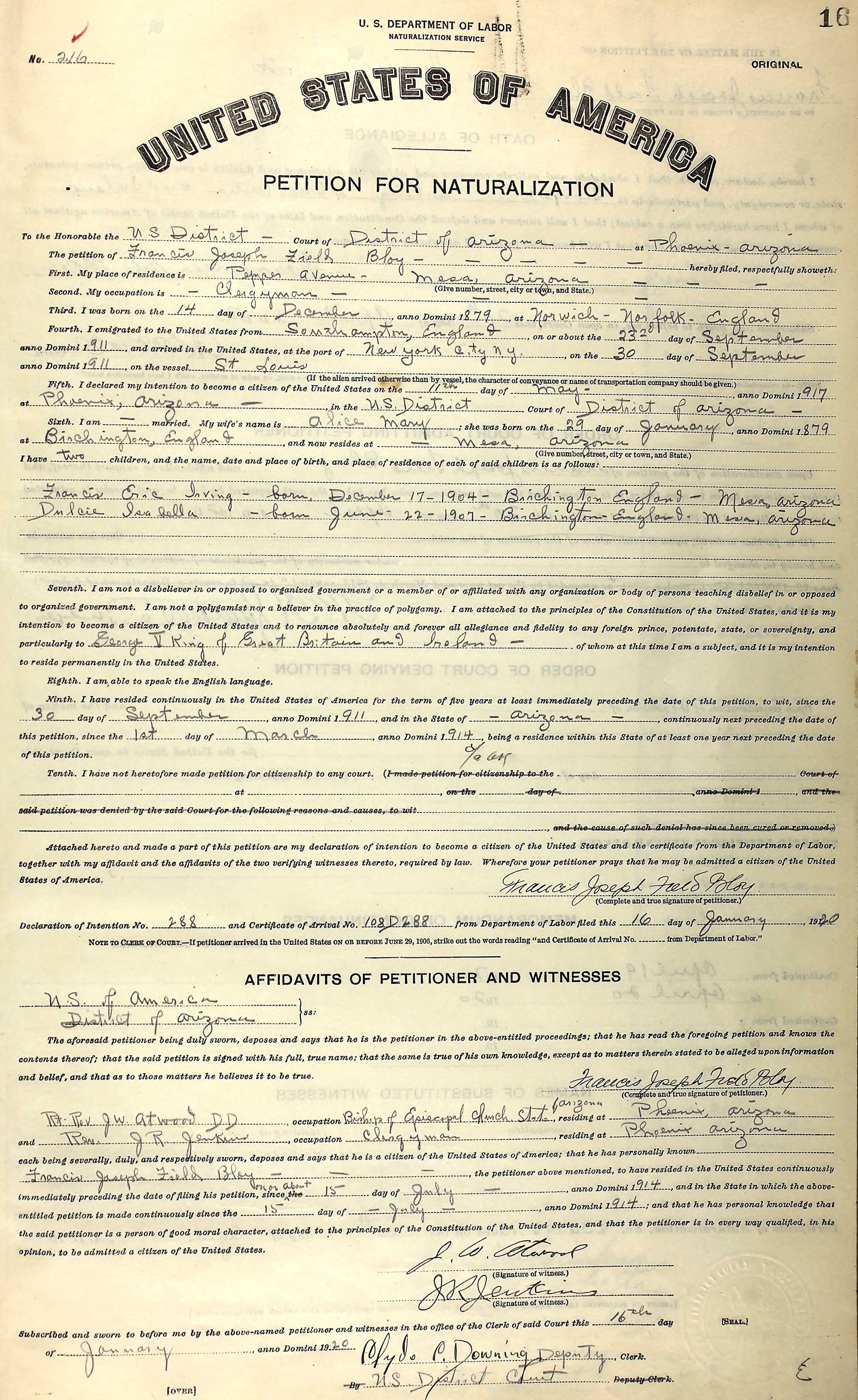 Alice Pointer - US Naturalisation
