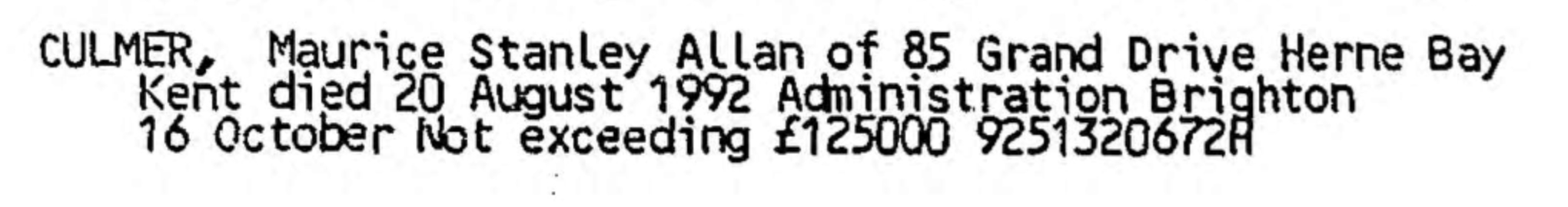 Maurice Stanley Allan Culmer 1924 - 1992