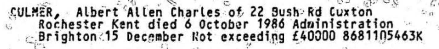 Albert Culmer - Probate
