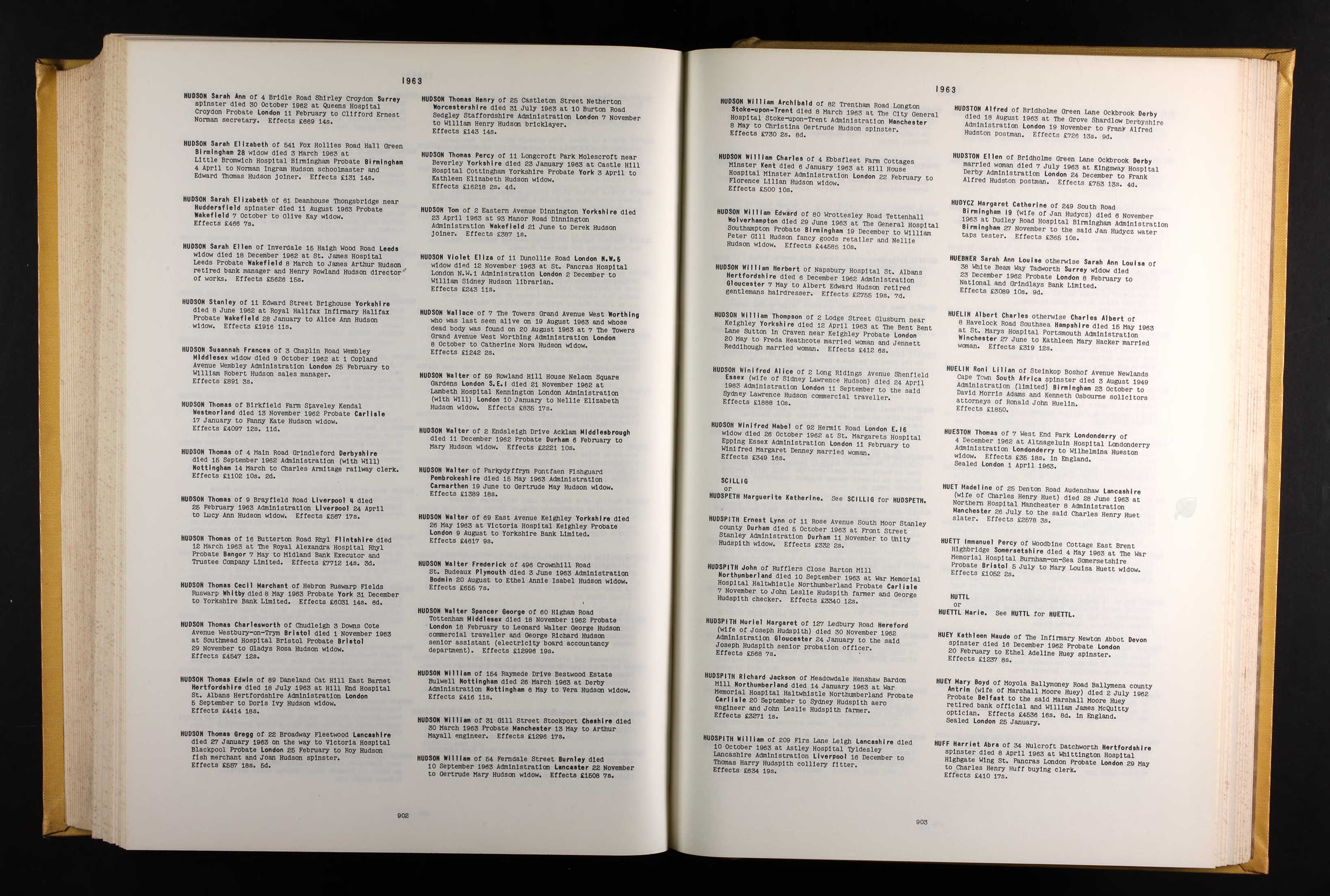 - England & Wales, National Probate Calendar (Index of Wills and Administrations),1861-1941 Online publication - Provo, UT, USA: Ancestry.com Operations Inc, 2010.Original data - Principal Probate Registry. Calendar of the Grants of Probate and Letters of Administration made in the Probate Registries of the High Court of Justice in England. Londo