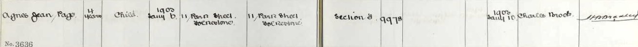 Agnes Jean Page - burial register