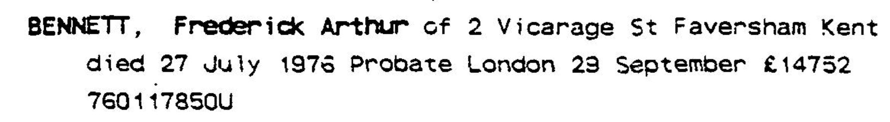 Frederick Bennett, the third cousin once-removed on the mother's side of Nigel Horne, was born in Canterbury, Kent, England on Oct 3, 19061,2,3,4 and baptized there at St Mildred on Oct 21, 1906. He married Elsie Punyer in Sittingbourne, Kent, England around Feb 19566.