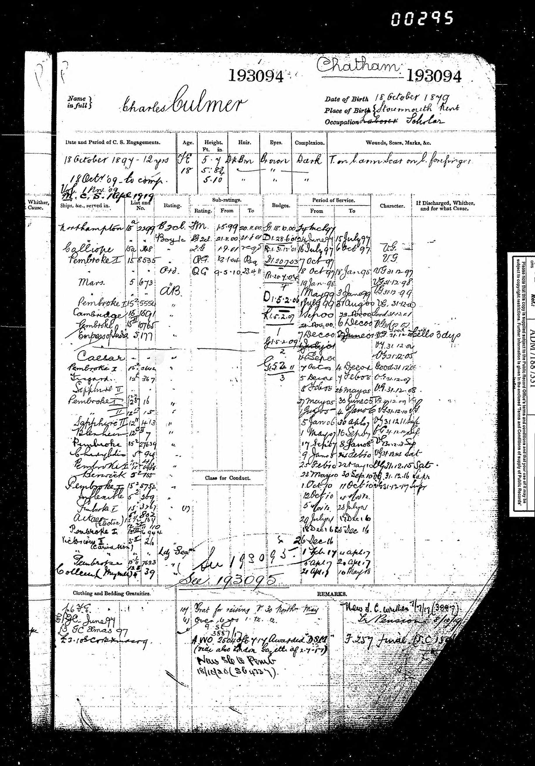 Charles Culmer - Royal Navy Service Record
