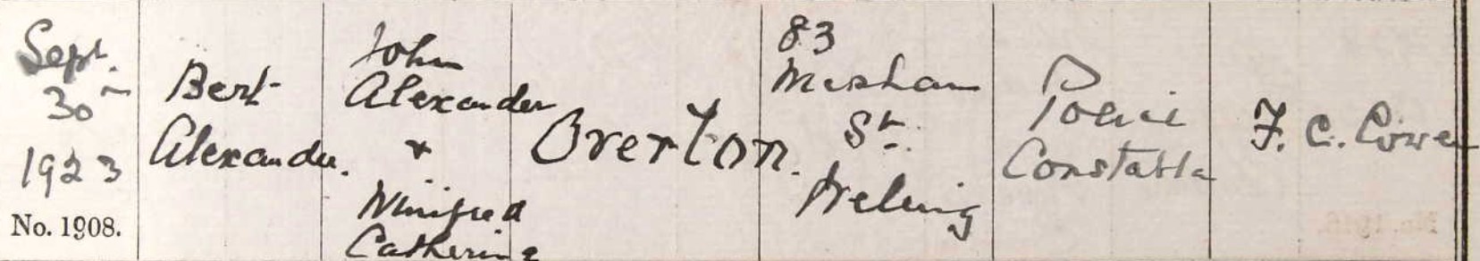 [ Home ] | [ Calendar ] | [ Surnames Index ] | [ Family History ]A drilling machine hand and the older of 2 children of John Overton (a metropolitan police constable) and Mona Long,