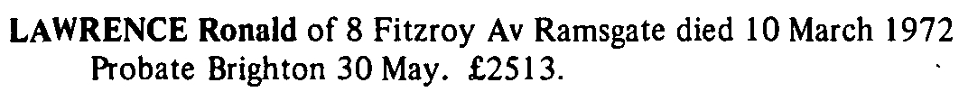 Throughout his life, he lived at 1 Church Cottage, Woodnesborough, Kent, England on Sep 29, 19391; and at 8 Fitzroy Avenue, Ramsgate, Kent in 1972 (the same place as his mother had been living in 1965).