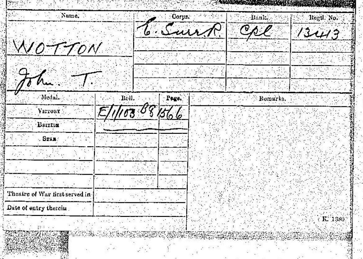 John Thomas Wotton - WW1 Record