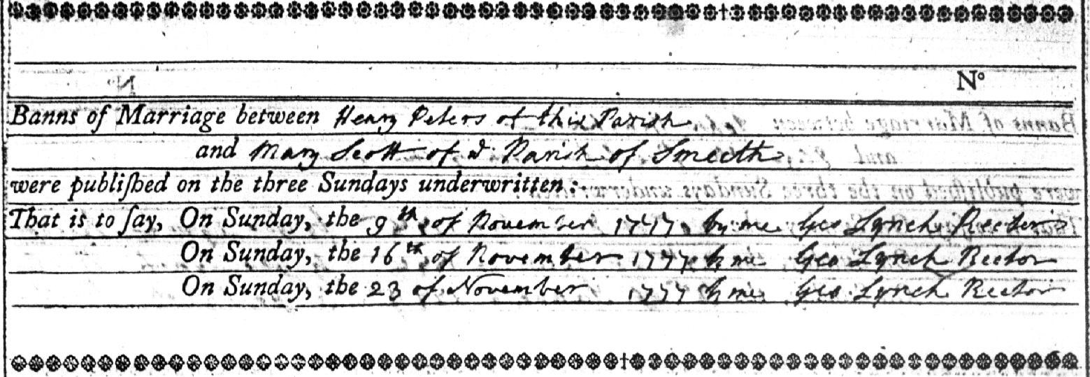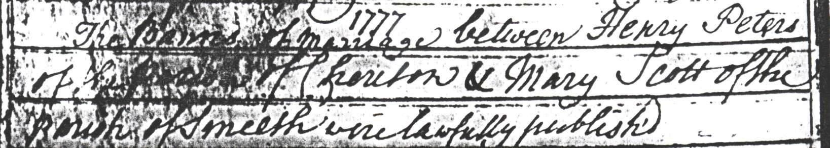 Henry Peters, the 4 times great-grandfather of Nigel Horne, was born in Ore, Sussex, England in 17551 and married Mary Scott (with whom he had 9 children: Mary, Sarah, Henry, Elizabeth, Charles, Jane, William, Benedicta and Harriet) at St Mary the Virgin Church, Smeeth, Kent, England on Dec 6, 17772.