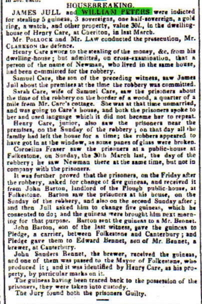 William Peters, the four times great-uncle of Nigel Horne, was born in Folkestone, Kent, England in 17921,2,3,4,5,6, was baptized there at Parish Church of St Mary & St Eanswythe, Church St on Dec 9, 1792 and also married Ann Andrews (with whom he had 1 child, Harriet) there, on Feb 6, 181310.